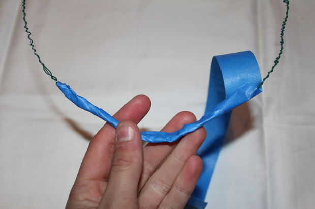 Alambre realmente duele cuando asoma en ti, y me duele especialmente cuando atiza en la cabeza. Para evitar que esto suceda, me gusta envolver mis coronas en cinta! Es super fácil y rápida y también le da una base mucho más grande para pegar tus flores a!