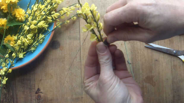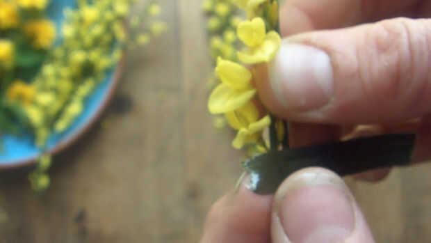 Tomar sus flores frescas, cortar a su tamaño para que puedan hacer pequeñito Ramos bitty miniatura pequeña teeny. Entonces cinta los tallos con la cinta floral y cinta adhesiva a su cable.