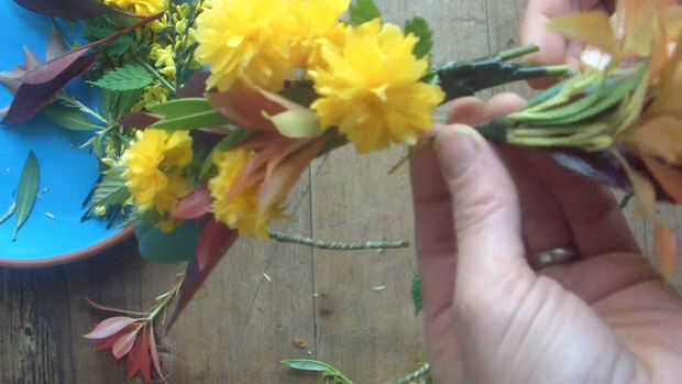Si usted puede conseguir sus manos en el alambre floral de fibra natural, le da un aspecto rústico agradable sin tener que cubrir el cable entero. Hacer sus pequeños Ramos de flores y adjuntarlos a solamente un lado del cable. Entonces simplemente gire los extremos entre sí para hacer un cierre.