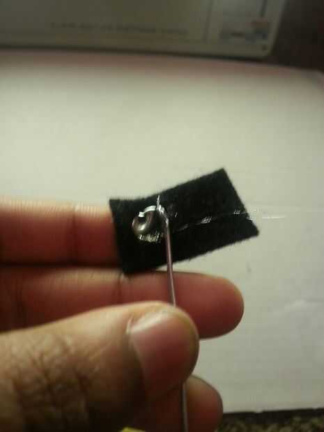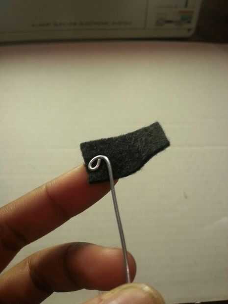 Primero formé el alambre a una forma de U lo suficientemente grande para fijar a mitad de camino alrededor de mi cabeza, como una corona. Luego hice dos lazos en el extremo del alambre. Pegué un trozo de fieltro para cada uno del final del bucle para evitar que se enrede en mi pelo.