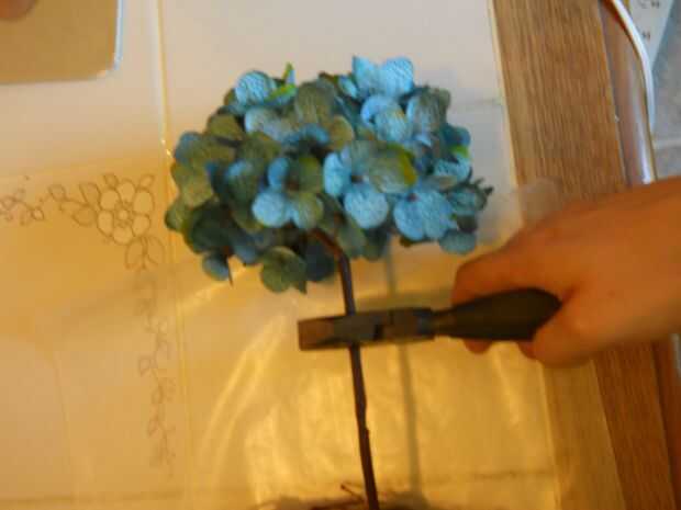 En primer lugar, corte las flores. Cortar aproximadamente 2 pulgadas desde la base de la flor de mina. Esto proporciona suficiente longitud para la flor en su lugar de anclaje.
