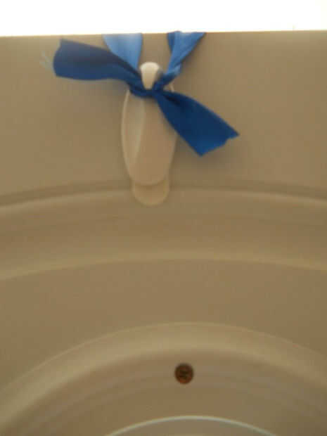 Luego corté un trozo de cinta sobre dos veces el diámetro de la corona. Luego envuelve la cinta alrededor de la corona y la parte superior y ató un nudo en ella.