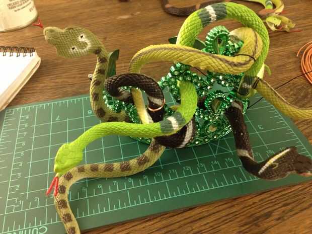 No dude en probar la corona mientras trabaja en él. Hacerlo no sólo ayudará a ver qué áreas necesitan más serpientes o colocación de diferencia; también le ayudaremos a asegurarse de que no sobrecargar un lado. Lo usa todo. Tomar algunas fotos. ¿Necesita más culebras? ¿Aspecto bastante amenazador? ¿Quieres amenazar a la gente más corta o más que tú? Si el primero, luego el ángulo de su silbido serpentea hacia abajo. Si el segundo ángulo hacia arriba. O simplemente ir de un equilibrio de ambos!