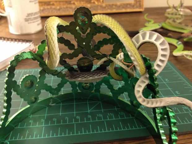 Para esta parte, confían principalmente en corte estratégico y el uso liberal de alambre fino para asegurar las serpientes. No te preocupes el cable mostrando; se ocultará en el paso siguiente.