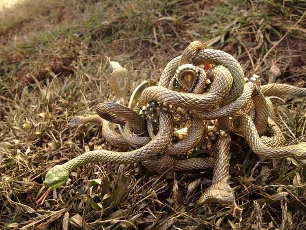 Añadir más capas hasta llegar a un punto donde sólo puede ver indicios de los patrones originales en las serpientes. Esto ayuda a mantener las serpientes identificable, pero también ayuda a la corona como una pieza unificada (y esconde lo cables/pegamento).