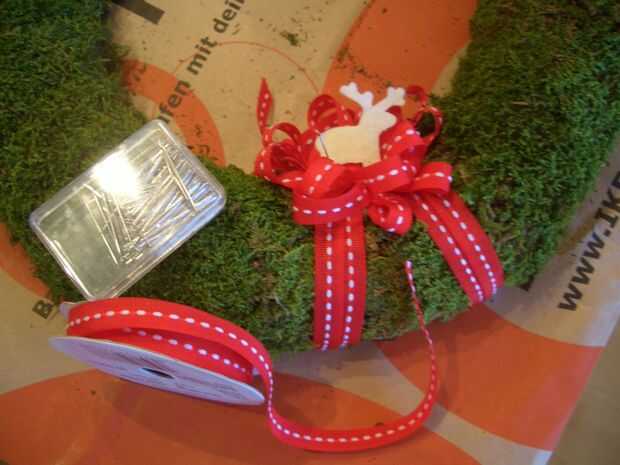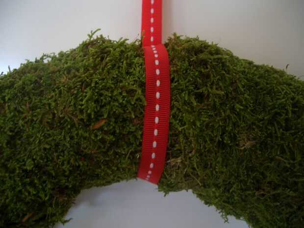 Si quieres colgar tu guirnalda, debe agregar la cinta a la parte superior de la corona. Simplemente Envuelva la cinta alrededor de la corona una vez y pin en su lugar. Luego unir los extremos de la dos cinta.