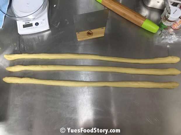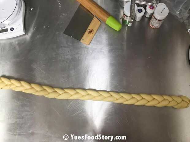 Amase las piezas en tira larga y luego trenzar la masa como trenzar una trenza. Conectar los dos extremos y ahora es una corona!