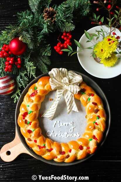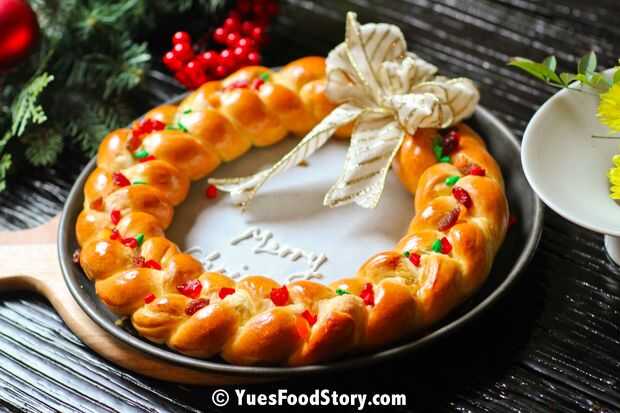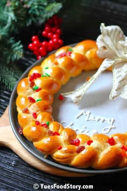 Rociado algunos arándanos secos y pasas de uva en la parte superior del pan (Nota: no les hornear juntos como los frutos secos son en la parte superior, por lo que el calor se quema). Decoración con un bowknot de vacaciones y ahora está listo!