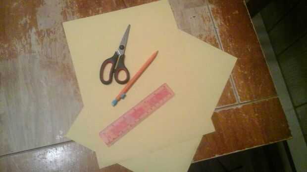 Se necesita: -Papel de construcción (usé amarillo pero puede usar cualquier color) -Tijeras u otro dispositivo de corte (cuchillo del exacto, recto, etc.) -Lápiz -Regla -Grapadora y grapas
