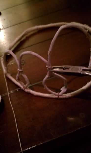 Para hacer la base de la corona usa una guirnalda de la Navidad y quitó todas las bayas y las hojas y terminaron con solo el cable. Puede que necesite utilizar los alicates para ayudar a usted stipp las piezas apartes. Guardar las hojas y las bayas ya que ésos se pueden utilizar para los acentos en la corona más adelante. Ssave el pequeño alambre, este lazo de elp willh puntos al crear el formulario base de la corona. Modelo de formulario para parecerse a una tiara con arcos y varios lazos. Utilice los pequeños pedacitos de alambre para sujetar los arcos y según sea necesario a redondo hacia fuera la curva.