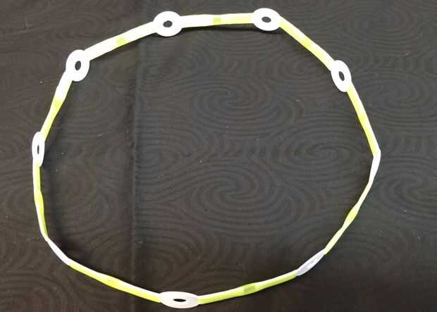 Conectan los segmentos juntos al final para hacer un círculo. Pruébalo en la cabeza real. Si es demasiado pequeña, añadir otro segmento. Si es un poco demasiado grande, está bien. Si cae más allá de las orejas, es demasiado grande – eliminar un segmento. ¡ Felicidades! Ahora tienes un sencillo y elegante anillo real. ¿Pero queremos la corona vistosa, correcta?