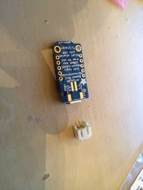 Antes de soldar el conector restante de la mitad de la extensión que estaba usando, te recomiendo soldar en un perno de JST PH 2 conector SMT de la baratija. Esto suena complicado, pero sólo quería una manera fácil de conectar la batería con el Abalorio y Abalorio al anillo con cables como pocos como sea posible. Es a sólo $75 más pero hace que conectar y desconectar la batería muy fácil. En la parte posterior de la baratija, es un esquema de donde va el conector. Asegúrese de todos los cuatro puntos para garantizar una conexión de la soldadura.