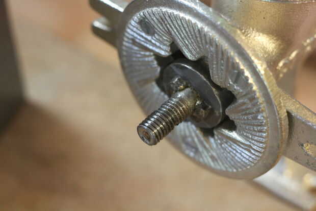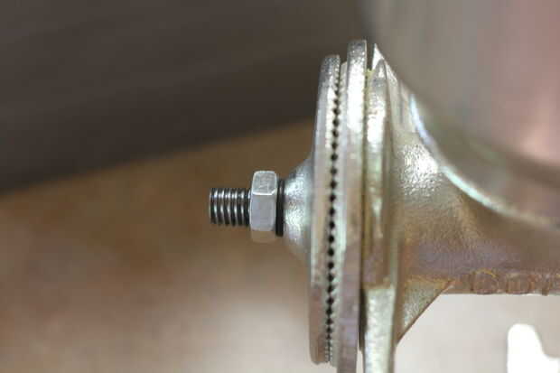 Ayudó a fuera un poco en la nivelación de las rebabas del uno al otro. Debido al espacio limitado utilicé una contratuerca (son más finas). Si usted podría encontrar una tuerca muy fina (también conocido como tuerca de tope) y luego ir para. En este caso la Junta mantiene la presión de la tuerca y mantiene en su lugar. Puede utilizar pegamento o loctite para mantenerlo en su lugar si lo desea. La Junta también ayudó incluso el desnivel. Si tienes acceso a un molino y torno podría hacer un infierno de una amoladora de un molino de corona.