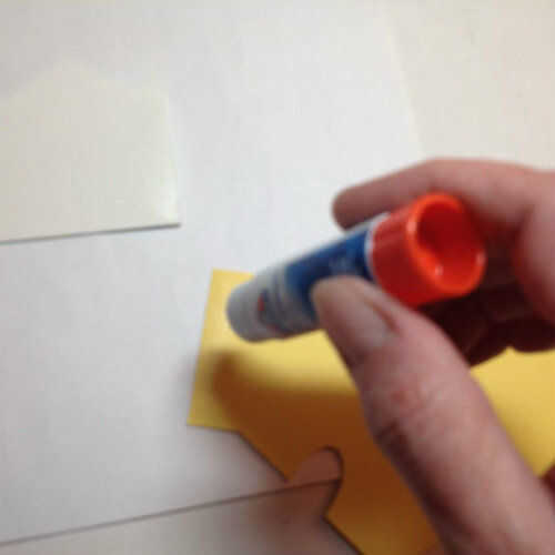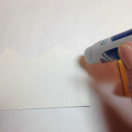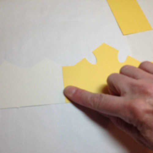 Aplique pegamento en la parte posterior de uno de los bordes laterales de la carátula del corona. Luego aplicar pegamento a la parte delantera de los borde hacia delante * de un panel del lado de la corona. Pegan los paneles frontales y laterales. Pegue el otro panel lateral en la parte frontal de una manera similar.