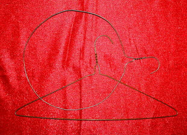 Inicio estirando cada percha en forma circular con la mano. Primero saque desde todos los ángulos, a partir de la parte inferior y luego enderezar o empuje en los dos lados antes de alrededor del círculo entero otra vez, doblando el alambre en la forma correcta para los últimos toques. No te preocupes de ser exacto, porque las ramas o conos serán ocultar todos los defectos.