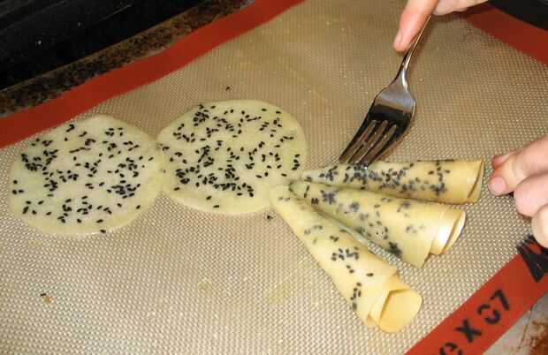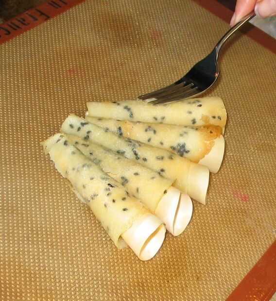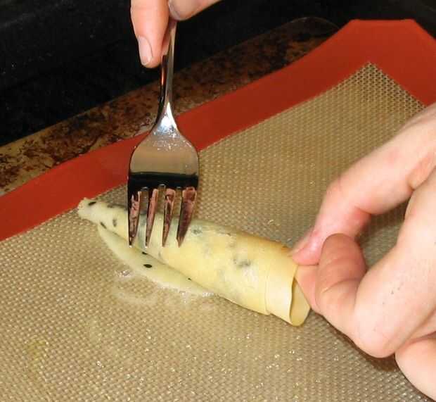 Saque la hoja y sentarse en la puerta del horno para mantener caliente mientras trabajas. Sostener la parte superior de su molde de papel con la mano fuera y utilizar una herramienta para manipular la corona con la mano dominante. Ser cuidado-la corona es caliente y grasiento; REALMENTE no quieres tocarlo directamente. Rollo de la corona alrededor del molde firmemente como puedan, y terminar con el lado de la costura hacia abajo. Las otras coronas del rodillo y ponerlos uno contra el otro para prevenir desenrollado.