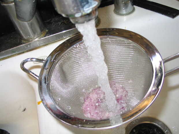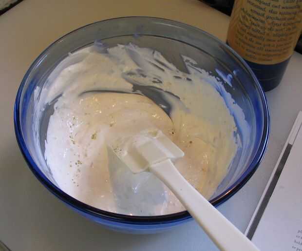 Consiguió la nata fresca para llegar a picos suaves, pues empujó en la nevera y esperar lo mejor. Se pone un poco más sólido que se enfría, pero no mucho. También, lave más de 1T cebollas ya que algunos se pierden en el tamiz; medir el 1T de las toallas de papel.