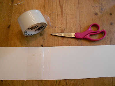 Mientras que el encaje está en remojo, preparar una forma de corona cortando una tira de 20 "x 4" de cartulina.  Si con una hoja más pequeña, corte dos 10,5 "x 4" piezas.  Traslape 1/2" y únalos con cinta adhesiva en la parte delantera y trasera.