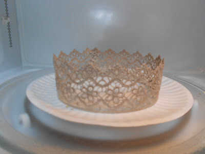 Paso 6: Quite la placa del microondas y rocíe completamente la corona (en forma) con refuerzo. Volver al microondas y microondas en definitiva incrementos hasta que se seca al tacto.