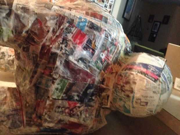 El papel maché y 1 taza de pulpa de papel, cubra totalmente, prestamos especial atención a los detalles que desea mejorar, suave o crear,