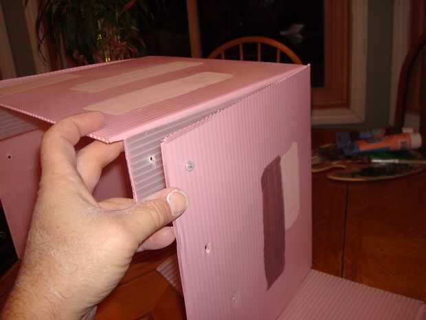 Después de cortar y doblar los 4 lados de la cabeza, un agujero y poner un tornillo en la parte superior de la aleta de 1" hacia abajo y 1" en ambos lados.