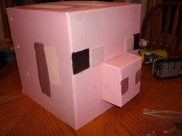 Cortar dos 1 3/4 "x 1 3/4" de píxeles de la parte blanca del ojo, había pegado con pegamento caliente o pegamento y había pintado los oídos, nariz y hocico después de aerosol pintando.