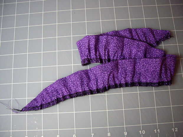 Se reúnen el borde inferior de la flor con dos filas de largo hilván. Tirar de los hilos de la bobina (hilos de rosca en la parte inferior) para recoger a la tela de flores. Cómo bien tire de los hilos del encuentro efectos la apariencia de su flor. Que tenga que hacer algunos ajustes antes de tener lo que quieres. Reúne más hace una flor más suave, puede que necesite algunas áreas para ser más estrictos que otros. Si desea que su flores de aspecto parecido a una rosa, hacer su reúne más apretado y más flojo en los bordes exteriores en el centro. Si desea que sus flores parecen más como una madre recógelo más estricto desde el comienzo hasta el final.