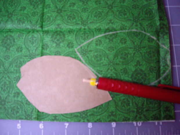 Doble a la tela de la hoja para que cuando se corta te la parte delantera y trasera de su hoja. Rastro, centro del perno de la hoja para que la tela no se mueve, corte tres sets. (o uno por cada hoja que desee incluir)