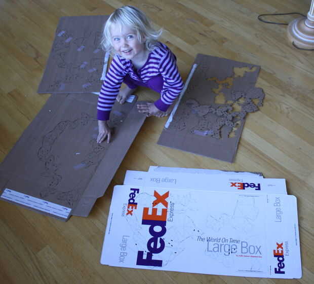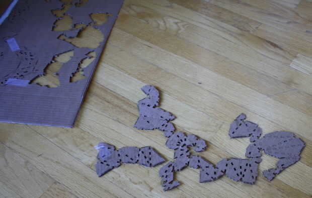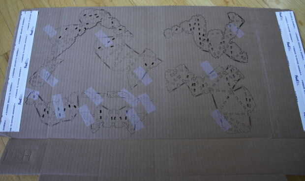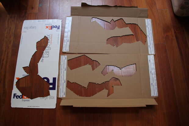 En las imágenes, sólo el segundo muestra paneles (realmente el desecho de cartón) que fueron utilizados en la máscara. Imágenes de 3 a 6 muestra paneles no usé porque eran demasiado pequeños para manipular (62 paneles total versus 22 paneles total para el mismo modelo). Ajustar los paneles demasiado pequeño de sus láminas de cartón mantiene un dos años ocupado por un tiempo.