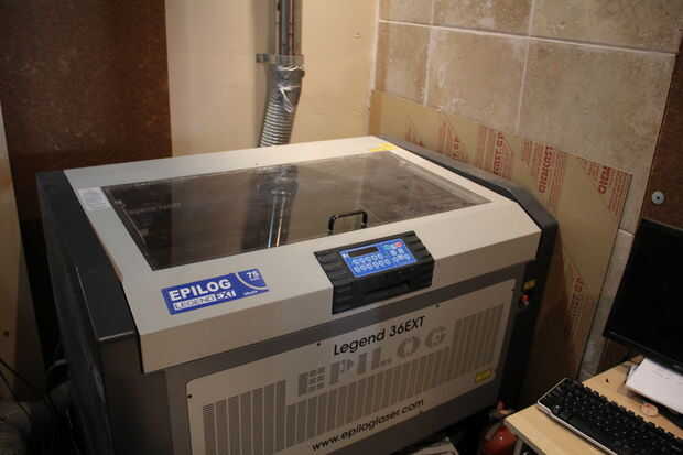 En nuestra cortadora de láser de Epilog de 75 vatios, usé energía del 100% 75% velocidad de contornos, energía de 100% de velocidad de 90% de las perforaciones y potencia del 8% de velocidad 100% para las marcas.