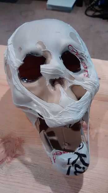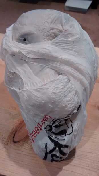 Envuelva la bolsa de plástico, al azar alrededor del cráneo.