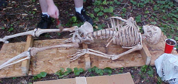 Lavado sucio es principalmente agua con poco agregada de pintura oscurezca. Mezclar el agua y pintar bien y comience a cepillar sobre el esqueleto. Si parece oscuro, agregar más agua. Si es que claro, puede agregar más pintura a la mezcla o hacer varias capas.