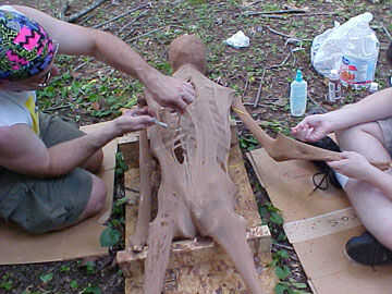 Después de que el cuerpo está cubierto, usted necesitará 'angustia' a la piel. Usando tijeras, un cepillo de alambre, cuchillos de artesanos o incluso tornillos, lo que usted tener a mano, abra agujeros y hacer carreras en la piel de media. Desea suficiente almacenamiento que parecen de piel, pero también tienes algunos huesos para mostrar.