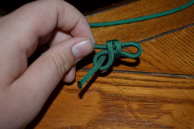 En primer lugar, vas a hacer un nudo en cada extremo de la cuerda. Para ello, hacen una forma de "S" al final de su cuerda. Tome la parte inferior de la "S" y pase por el resto de la "S" dos o tres veces. Ahora tome el extremo de trabajo y ponerlo a través del lazo existente. Ahora tire de cada lado de la cuerda para apretar.