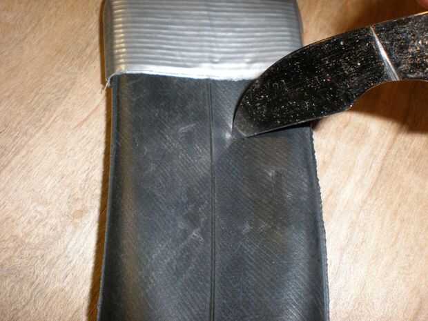 Marque con un elegante libro de una llanta vieja. Fácil de hacer usando sólo unas pocas herramientas simples.Aquí es lo que necesitarás:1 x tubo interno viejo.Ojeteador de cobre amarilloHerramienta de ojetePonche de cueroTijerasPaso 1: Lavar y cortar
