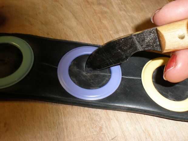Marque con un elegante libro de una llanta vieja. Fácil de hacer usando sólo unas pocas herramientas simples.Aquí es lo que necesitarás:1 x tubo interno viejo.Ojeteador de cobre amarilloHerramienta de ojetePonche de cueroTijerasPaso 1: Lavar y cortar