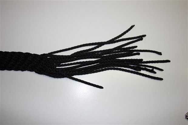 Para terminar con un extremo suelto o con un acabado final acortado el trenzado o cortar algunos de los filamentos por lo que hay alrededor de 6 cm a la izquierda y empezar a palabra la hebra en el tejido siguiendo el filamento que tiene que ser trabajo detrás.
