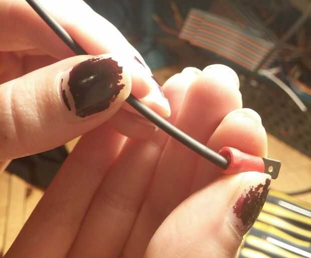 Ahora tienes un cable de goma conductora con un terminal adecuado en cada extremo. Vamos a medir Cuáles son los rangos de este cable con un polímetro.