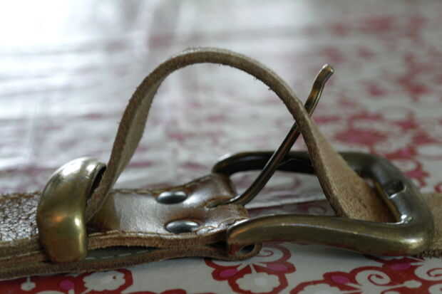 Sobre en el taller tenía un cinturón viejo.