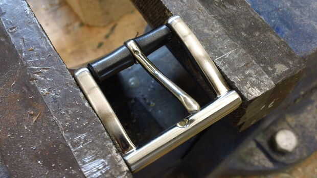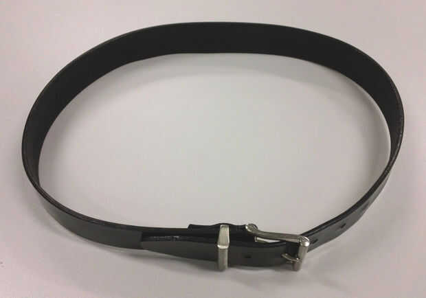 1. Tomé un simple cinturón negro y corte la hebilla con una sierra para metales. Usted ni siquiera necesita una banda lo suficientemente grande para el tamaño de su cintura, porque no necesita mucha superposición.