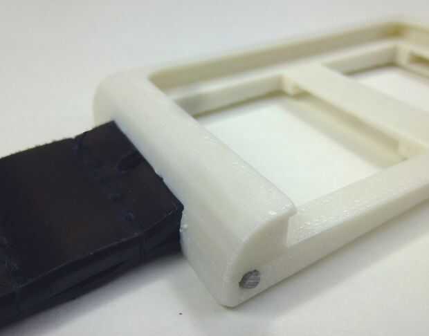 2. Una vez que hayas impreso la hebilla del cinturón y titular de la tarjeta, simplemente es necesario adjuntar la correa a través de un alambre de metal de 1/8".