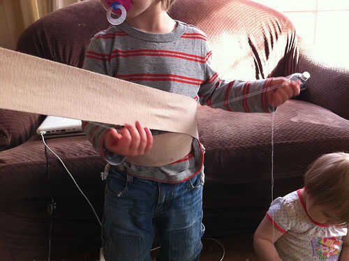 Estirar la cintura alrededor de un libro que le mantenga un poco tenso para el siguiente paso.