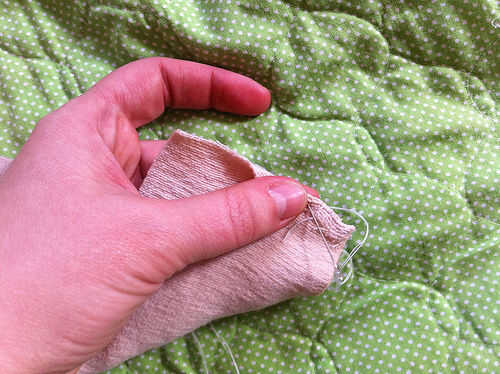Terminar el borde de corte; Simplemente había doblado encima y lo cosió.