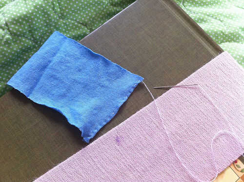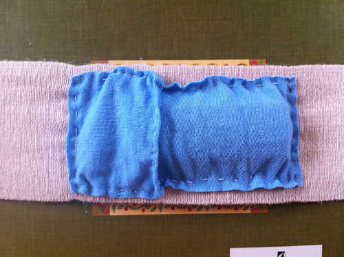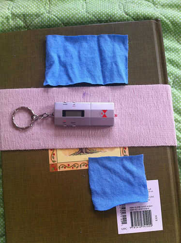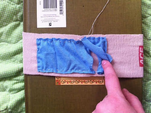 Cortar dos piezas de tejido elástico. La primera debe ser más grande que la alarma todo el camino alrededor así que eso lo puede cubrir completamente cuando cosido a la cinta. El segundo debe ser menos ancho que la alarma de forma que cubra la mitad de ella cuando cosido a la cinta.