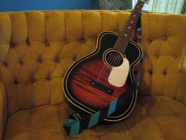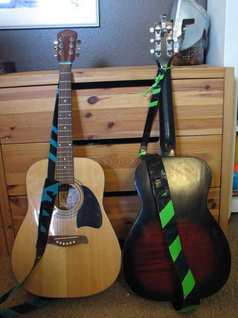 Mientras navega por Instructables, se me ocurrió que, de todas las correas de la guitarra en el sitio, sólo he podido encontrar dos de cinta adhesiva, y la sola ajustable cuenta con cadena para ajustar. Así que, decidí remediar esta situación mediante la creación de una correa ajustable, hecha de cinta (aparte del conector de cuello).