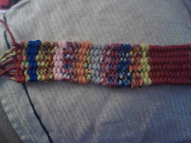 Esto es una trama muy simple. Que empezar en un lado y tejer su carrete 2over luego debajo, encima, debajo hasta le consigue al otro lado. Luego hacer el mismo en la otra dirección. Continuar / bajo/en exceso, ir en la otra dirección hasta que tenga la longitud deseada.