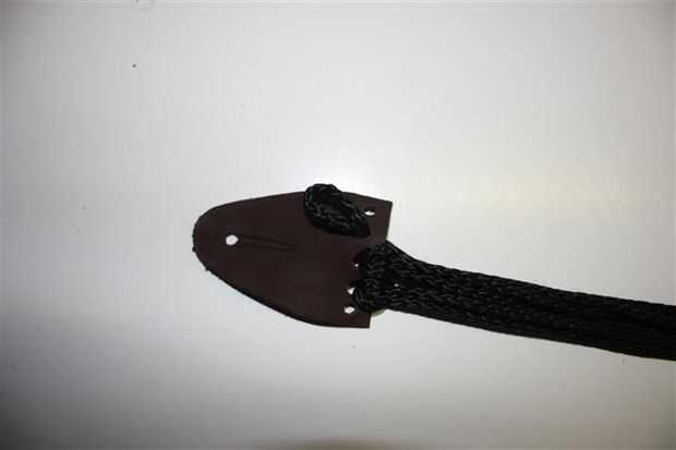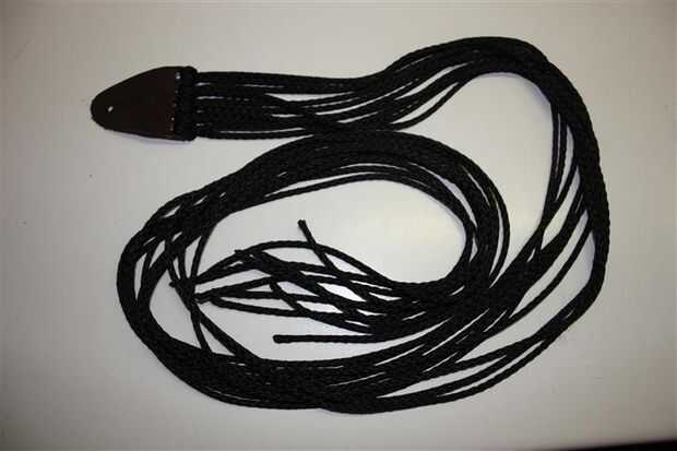 Mi novio tiene muchas guitarras, pero hasta hace poco, sin correas.Este es el prototipo de lo que una correa de guitarra sin necesidad de utilizar fijaciones de una correa previamente comprada (que encontrado común entre otras correas de guitarra DIY
