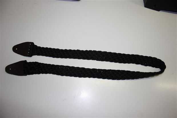Mi novio tiene muchas guitarras, pero hasta hace poco, sin correas.Este es el prototipo de lo que una correa de guitarra sin necesidad de utilizar fijaciones de una correa previamente comprada (que encontrado común entre otras correas de guitarra DIY