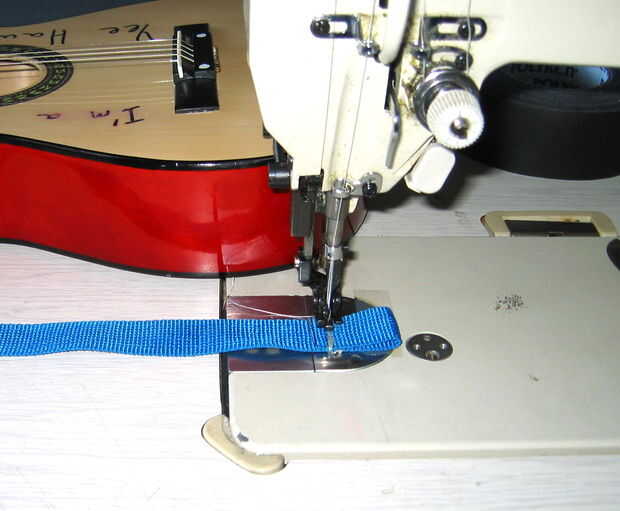 Doblar el extremo de la tira y coser, hacer un lazo. Si eso es es mucha molestia sólo puede copiar los nudos de la cabecera a partir de paso 4, que no implican ninguna costura.