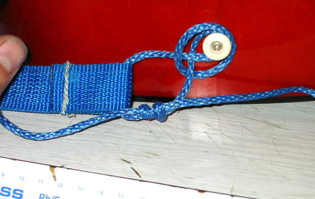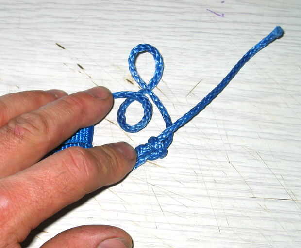 Lazo de la cuerda en un ballestrinque y enganchan en el botón de desagüe. "Libro práctico del muchacho americano" lo llama un "enganche del constructor".
